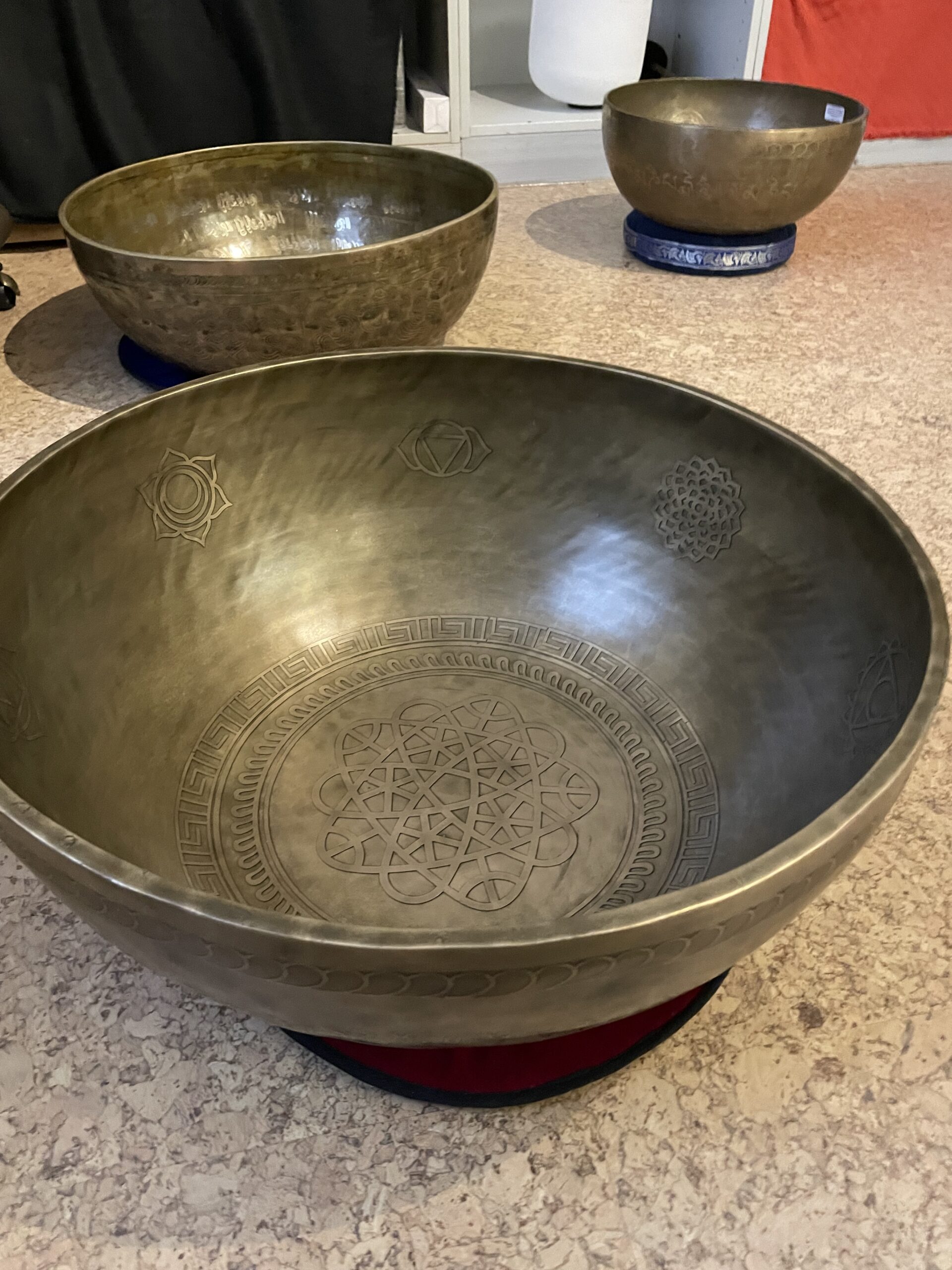 Massive und große, nach traditionellem Verfahren in Handarbeit hergestellte Fuß-Klangschale mit tiefem und lang anhaltendem Klang. Speziell auch für Behandlungen gefertigt ist sie bequem für die entspannende Fuß-Klangmassage, die wohltuende Klangtherapie.